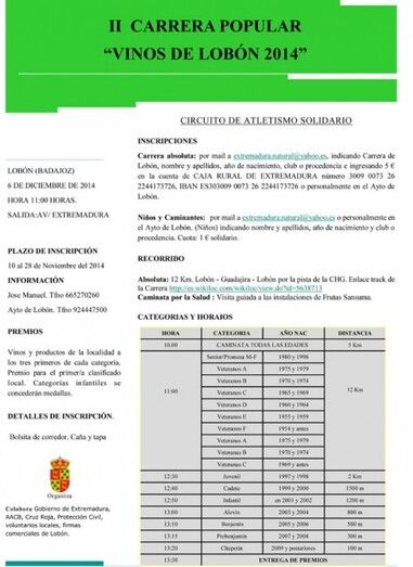 Las inscripciones pueden realizarse hasta el 30 de noviembre en el Ayuntamiento de Lobón y en el email [email protected] con una cuota de 5 euros para adultos y 1 euro para los niños.