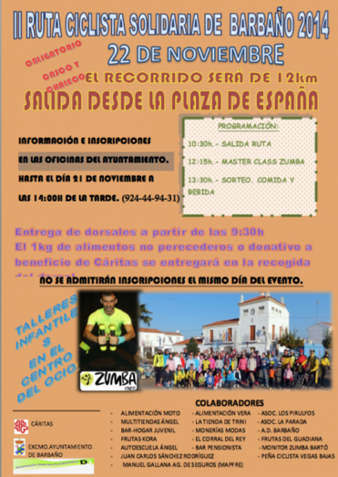 Organiza Ayuntamiento de Barbaño, Cáritas y Plan de Dinamización Deportiva de Extremadura, con la colaboración de varias asociaciones y casas comerciales.