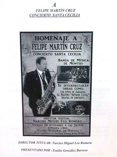 Bajo el título “Homenaje a Felipe Martín Cruz, Concierto de Santa Cecilia”, la banda ofrecerá un extenso y variado repertorio que abarca desde Los sitios de Zaragoza a versionar al propio Sinatra.
