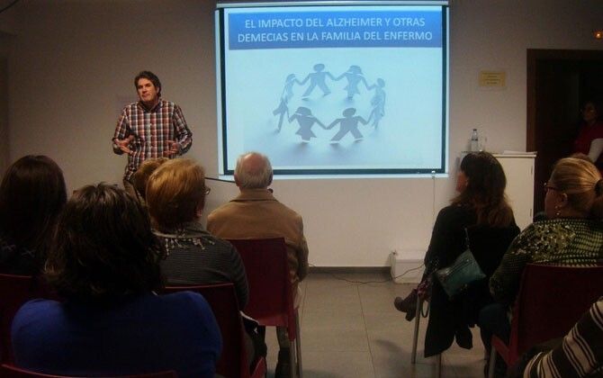 La segunda  ponencia de la tarde estuvo enfocada a “El impacto psicosocial de la demencia en el entorno familiar. El apoyo al cuidador informal” por parte de Antonio Jesús Díez Cantillo, Psicólogo del Centro Residencial y Centro de Día “Presidente Juan Carlos Rodríguez Ibarra” de Villafranca de los Barros, del SEPAD (Servicio Extremeño de Promoción de la Autonomía y Atención a la Dependencia) del Gobierno de Extremadura, quien abordó  el contexto donde se ve inmerso el cuidador principal y la multitud de cambios a los que se tiene que enfrentar y a los que están por llegar, destacando no sólo los efectos menos positivos cuando tratamos con enfermos con demencia sino también aquellos factores positivos, que también existen, que puede manifestar el cuidador cuando presta cuidados. Dio a conocer las variables, explicándolas, que afectan de una manera más impactantes en unos cuidadores que en otros. Sin duda, una conferencia ilustrativa para finalizar estas IV Jornadas sobre Alzheimer y otras demencias.