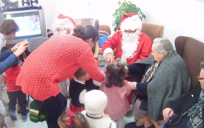 Papá Noel esperaba a los niños y niñas del Centro de Educación Infantil “Corazón de Jesús” en el Centro de Día de Personas Mayores de Puebla de la Calzada, el lunes día 22 de diciembre, donde se desplazaron acompañados de sus educadoras, abuelas, madres y padres para pasar una jornada intergeneracional navideña.