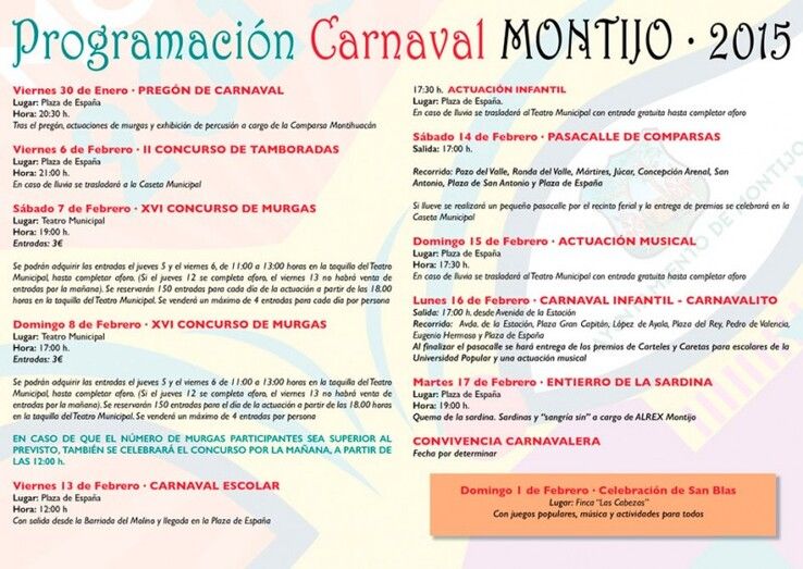 El Ayuntamiento de Montijo ha publicado la programación para el Carnaval de Montijo 2015.