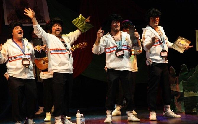 LOS ZAGALES que llevan 15 años como murga, fueron pioneros y fundadores del concurso de Montijo. Ellos muestran sobre el escenario su veteranía, su chispa y su profesionalidad.