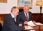 El alcalde Pedro Acedo, firmó ayer un convenio con el coleccionista Juan Gil, propietario del Museo del Automóvil y Motocicleta Antiguos de Hervás, que ha cedido toda su colección al Ayuntamiento de Mérida.