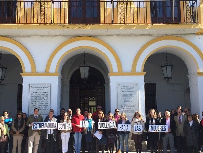 La muerte de Tamara Simón, una joven extremeña de 23 años, que tuvo lugar en Cáceres el pasado 11 de marzo, cuando cayó de un vehículo en marcha conducido por su marido, ha propiciado la concentración y un minuto de silencio que ha tenido lugar hoy en la puerta principal del Ayuntamiento de Mérida, en la Plaza de España.
