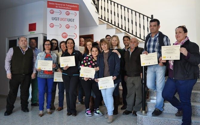 Tanto a la inauguración como a la clausura del curso acudieron miembros de UGT Extremadura, así como el concejal D. Juan María Delfa Cupido.