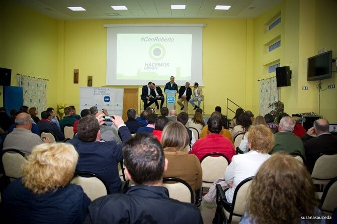 El secretario general del PP presenta la candidatura municipal del PP en Lobón que encabeza Roberto Romero. Anteriormente visitó la zona comercial de Puebla de la Calzada junto a miembros de la candidatura municipal