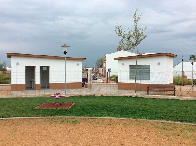 El quiosco que junto a los nuevos servicios que el Ayuntamiento de Puebla de la Calzada ha construido en el parque del Almendro ha salido a concurso público su explotación.