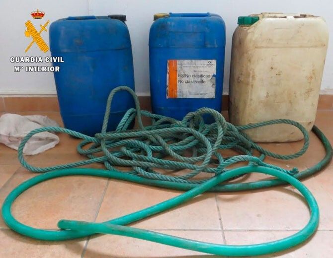 En el registro del turismo los agentes hallaron varios bidones de 25 litros de gasoil, así como una manguera utilizada para la extracción del combustible.