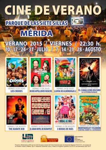 Todos los viernes de julio y agosto tendrá lugar el Ciclo de Cine de Verano de la zona Urban 2015, enmarcado en las actuaciones de Eventos Vive el Río. El objetivo es poner en valor y potenciar el atractivo turístico, recreativo, ambiental, cultural y de ocio en la margen izquierda del río Guadiana. Será realizado por Destino Oeste Producciones en el Auditorio del Parque de las VII Sillas, ubicado junto a la Biblioteca Pública “Delgado Valhondo” a partir de las 22.30 horas.