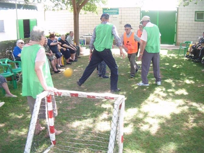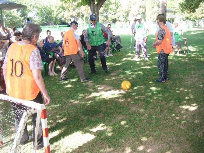 Tres contra tres detrás de un balón para intentar colarlo dentro de una portería y cantar gol, eso es lo que persiguieron las personas mayores del Centro de Día de Puebla de la Calzada los días 7 y 8 de julio en las instalaciones de la Piscina Municipal.