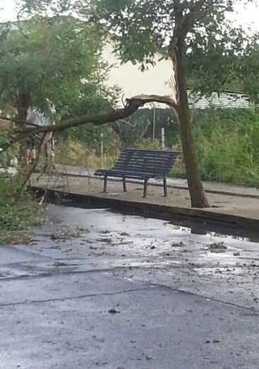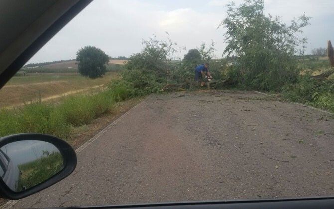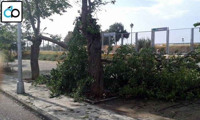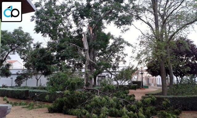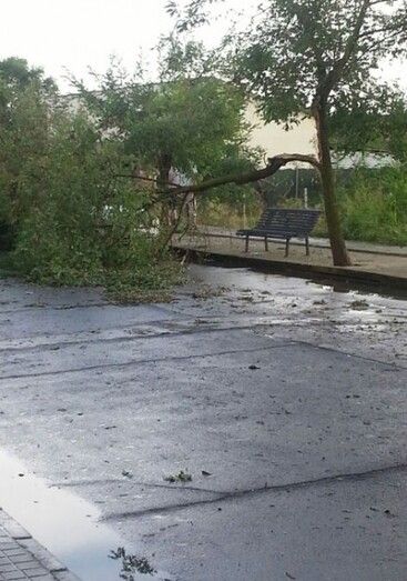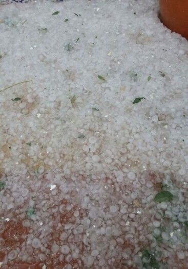 Una breve pero intensa tormenta ha caído en la comarca esta tarde dejando además algunos destrozos en la zona. Además de la fuerte lluvia y el viento ha habido precipitación en forma de granizo de un tamaño importante.