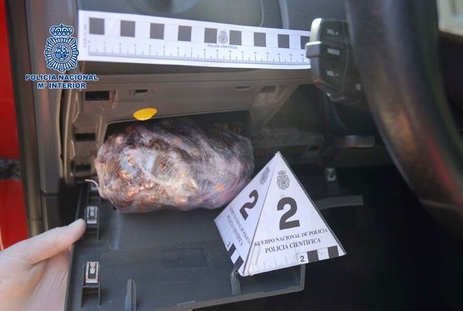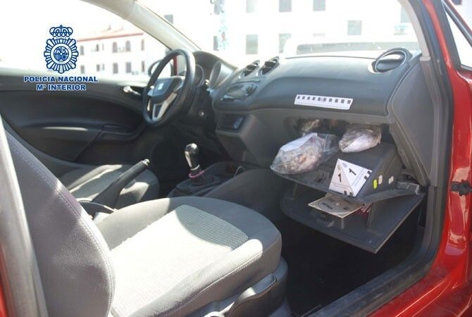 Tras filiarlo completamente, los policías realizaron la preceptiva inspección del vehículo, localizando en la zona del salpicadero, ocultos en la caja de fusibles bajo el volante y en la parte trasera de la guantera, cuatro bolsas conteniendo un total de 2.146 gramos de hachís, procediendo a su inmediata detención.