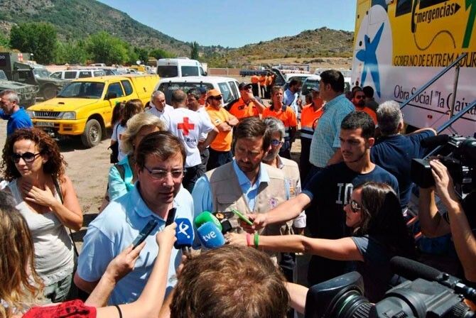 Fernández Vara ha adelantado que dentro de unos días, cuando se dé por extinguido el incendio, se procederá al análisis de los daños junto con los ayuntamientos de las localidades afectadas para que éstas puedan acogerse al Real Decreto 307/2008 de 18 de marzo de medidas aprobadas por el Gobierno de España.