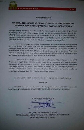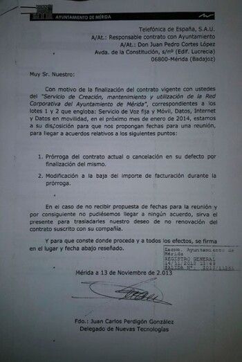 El Grupo Municipal del Partido Popular en Mérida responde a las acusaciones de la Portavoz socialista, Carmen Yáñez, sobre la prórroga ilegal del contrato de telefonía y presenta una documentación para avalar que "la prórroga es legal, legítima y se encuentra en el departamento de contrataciones".
