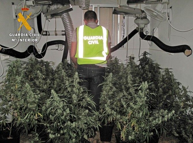 Fue este pasado lunes, cuando se llevó a cabo el registro en la citada vivienda, donde los agentes hallaron oculto en una de las habitaciones un  invernadero con 46 plantas de marihuana de un metro de altura y toda clase de dispositivos de aclimatación para el perfecto cultivo y conservación de las plantas (extractores, ventiladores, lámparas, temporizadores,…), además de una bascula de precisión.