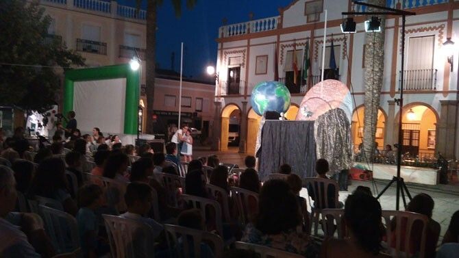 Ayer algunas de esas actividades se trasladaron a la Plaza de España con un gran éxito de participación. Concretamente se trataba del carro de títeres ´Una estrella enamorada´ para los más pequeños y posteriormente el espectáculo de calle `Espacio de Sensaciones´.