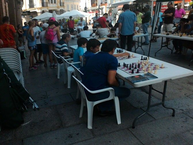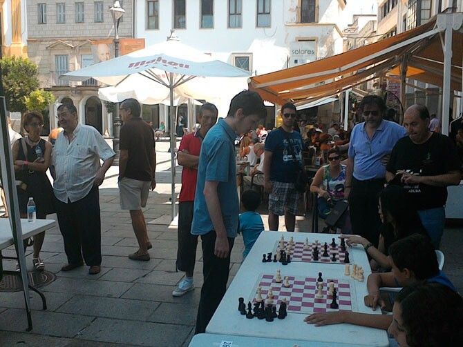 El sábado día 22 y en la Plaza de España de Mérida, los jóvenes ajedrecistas rusos del Club Magic Extremadura Dimitriy Oparin y Mijhail Antipov, de 17 años de edad, ofrecieron una exhibición de simultáneas jugando a la vez con cerca de cincuenta personas en total, entre socios del Magic y ciudadanos de la capital emeritense, que se fueron turnando para ocupar las plazas que quedaban vacantes de los veinticuatro tableros que se habían dispuesto para la ocasión.