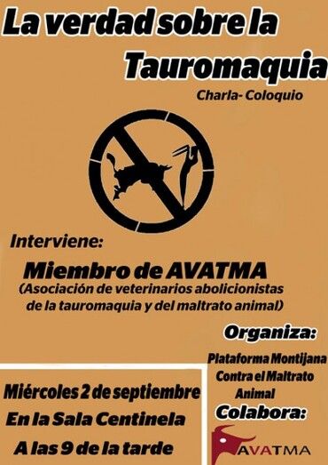 Intervendrá un miembro de AVATMA (Asociación de veterinarios abolicionistas de la tauromaquia y del maltrato animal).