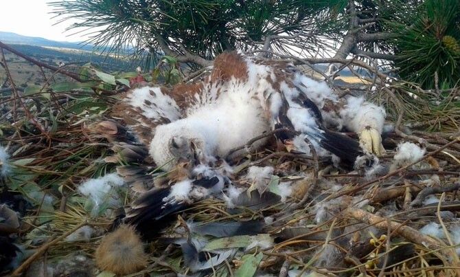 El pasado mes de mayo, en la Sierra de San Pedro dentro del término municipal de Alburqurque, un trabajador de la empresa encargada del seguimiento del ciclo reproductivo y de la alimentación de aves protegidas, descubrió en un nido el cadáver de dos polluelos de Águila Imperial.