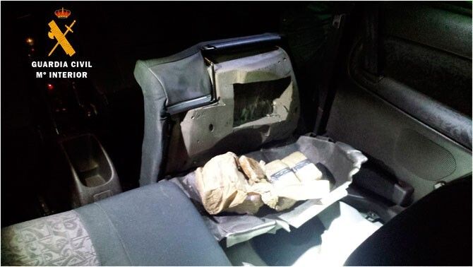 Una vez identificados el conductor y acompañante, dos hombres de 41 y 30 años de edad, ambos vecinos de la provincia de A Coruña, se  llevó a cabo un registro más exhaustivo del vehículo. Así fue, como en el interior de una maleta, se descubren envueltos 49 gramos de cocaína y en bolsas ocultas debajo de la tapicería de uno de los asientos 2 kilogramos de hachis.