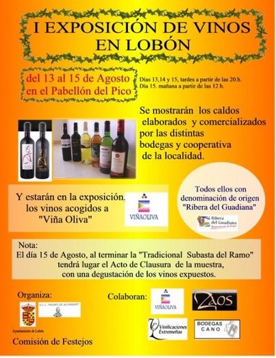 Lobón acoge la I Exposición de Vinos del 13 al 15 de agosto, donde se muestran los caldos elaborados y comercializados por las distintas bodegas y cooperativas de la localidad, todos ellos con D.O. “Ribera del Guadiana”.