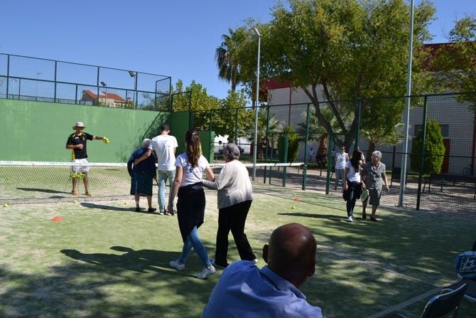 sesión de pádel inaugurando la Semana del Alzheimer de la localidad, quedando