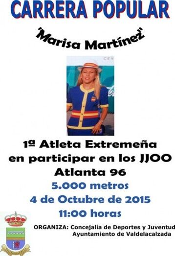 La idea de homenajear a la exatleta proviene de la Concejalía de Deportes, al programar una carrera popular para disputarse en la pre-feria de Valdelacalzada, con la intención de promover y fomentar la práctica de un deporte tan saludable como es el atletismo. Qué mejor nombre podría llevar un 5.000, que Marisa Martínez, prueba en la que la atleta consiguió participar en unos Juegos Olímpicos.