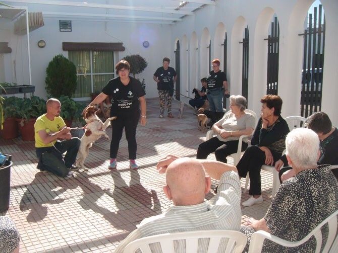 Los perros sintieron las caricias de las personas mayores, que disfrutaban con su presencia. Pinta, la galga, Chico, el bretón, Tom y Jerry, los podencos, Boli, el bichón maltés, Noa, el caniche y Trueno, jugaron y sintieron las risas, mimos y arrumacos de los mayores, que con la presencia de los canes percibieron sensaciones diferentes.