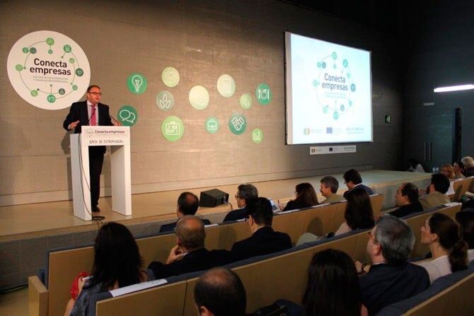 El alcalde, Antonio Rodríguez Osuna, ha intervenido en el acto de apertura, esta mañana en el Palacio de Congresos, del foro Conecta Empresas en el que ha ofrecido a Mérida como “un lugar estratégico para el intercambio empresarial”.
