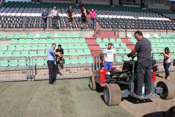 Cremades ha dicho que los trabajos van muy bien, “la lluvia retrasó medio día, pero el domingo finalizará el trabajo de colocación del nuevo césped”.