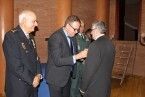 Entrega una de las medallas al conservador del M.N.A.R., Agustín Velázquez.
