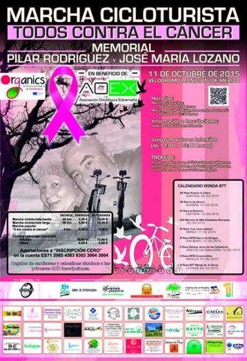 La Escuela Ciclista Mérida organiza, en colaboración con el Ayuntamiento, la Marcha CicloturistaI Memorial Pilar Rodríguez & José Mª Lozano, “con el fin de seguir concienciando y poniendo nuestro granito de arena en la lucha contra el cáncer” ha señalado Azucena Lozano, organizadora de la prueba.