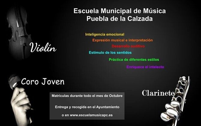 Aparte de todo lo mencionado, la Escuela acaba de incorporar dos nuevos instrumentos: Violín y Clarinete para los que el plazo de matrícula permanecerá abierto durante todo el mes de octubre.