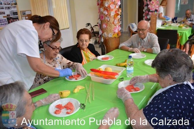 Los mayores del Centro de Día de Puebla de la Calzada han participado, en la elaboración de brochetas de frutas variadas, con motivo del Día Internacional del Mayor, estando dirigida por técnicas de la Mancomunidad Integral de Servicios “Vegas Bajas”, actividad enmarcada dentro de la V Semana del Mayor programada por la Mancomunidad.