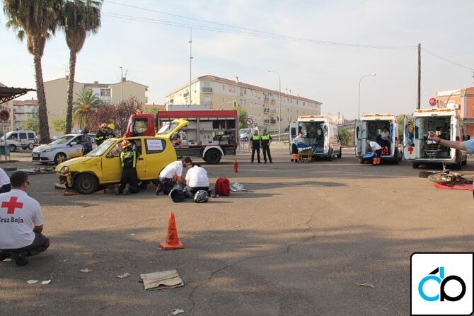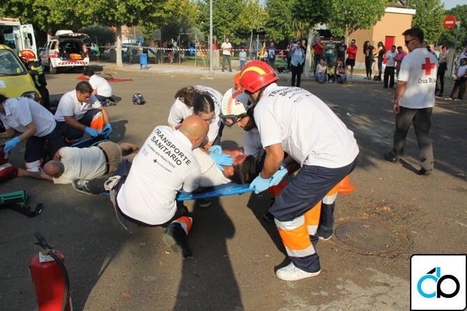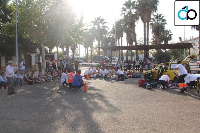 La Asamblea Local de Cruz Roja Española en Montijo ha realizado, en los aparcamientos de entrada del Recinto Ferial (Instalaciones de Cruz Roja), un simulacro de accidente de tráfico con motivo de la finalización del Curso de Certificado de Profesionalidad de Transporte Sanitario homologado por el SEXPE.