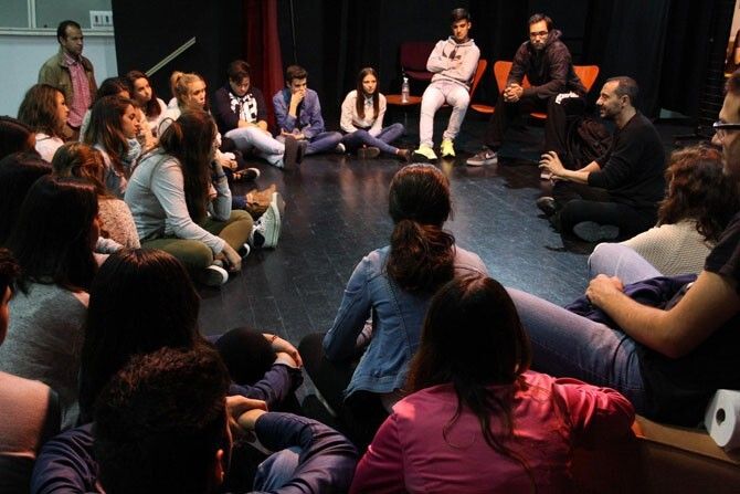 El actor y su compañero, Simón Ferrero, de “El secuestro de la banquera” departieron después de la obra con los alumnos del instituto e hicieron vibrar y sentir la emoción de las tablas y poder mágico de esta expresión artística.