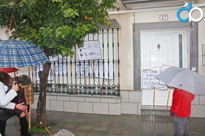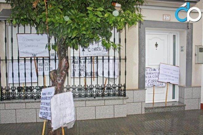 Con posterioridad volvieron a la Plaza de España donde decidieron desplazarse hasta el domicilio del exgerente de CAVAL, Manuel García, donde depositaron varias pancartas alusivas a la protesta, en la fachada.