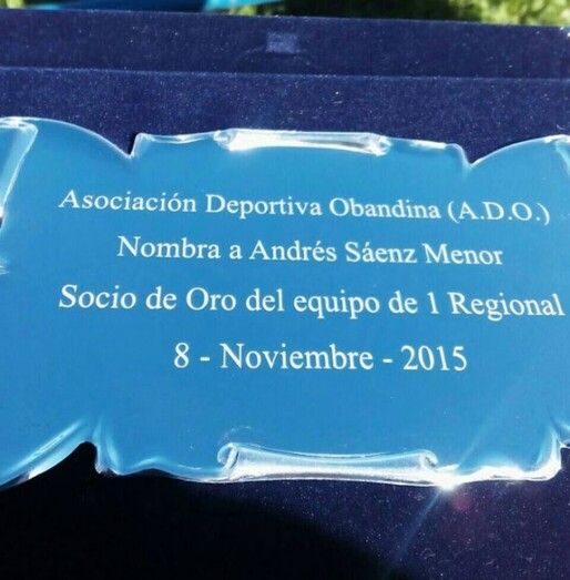 La Asociación Deportiva Obandina ha querido tener un detalle con uno de sus socios, Andrés Sáenz Menor, nombrándole socio de oro del equipo y entregándole una placa conmemorativa, por su apoyo incondicional en cada partido.