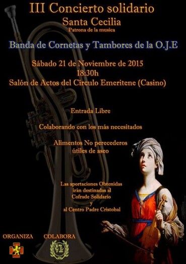 El 21 de noviembre, a las 18:30 horas, en el salón de actos del Circulo Emeritense (Casino), la Banda de Cornetas y Tambores de la OJE de Mërida celebrará un concierto de carácter solidario, en honor de Santa Cecilia, patrona de la música.