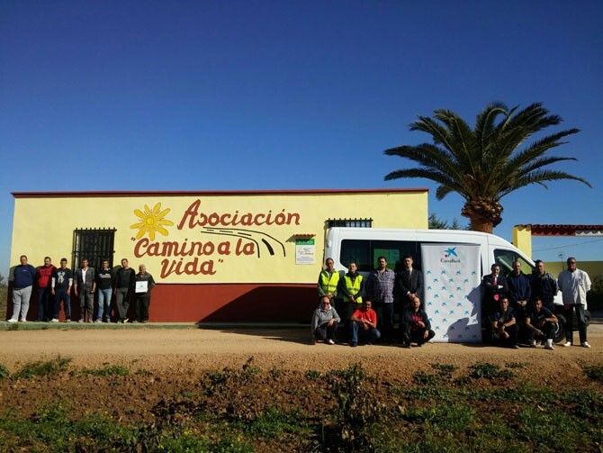 Directivos de "la Caixa" de Montijo han hecho entrega a los voluntarios de la Asociación Camino a la Vida, de una furgoneta de nueve plazas, mediante un renting subvencionado.