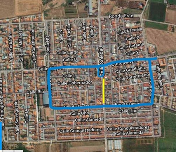 PROHIBICIÓN DE ESTACIONAMIENTO A PARTIR DE LAS 16:00 HORAS EN LAS CALLES: MAYOR, R.NORTE, R.OESTE, R.SUR Y CALLE DE LA SOLEDAD, EN EL TRAMO MARCADO DE AMARILLO.