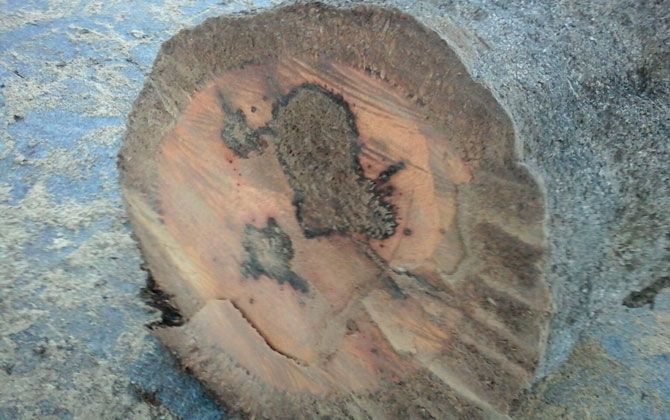 En el día de hoy, una vez que se ha procedido talar el tronco de palmera que quedaba, se ha observado además una importante pudrición interna en el tronco desde el punto estimado de fractura, hasta la base del mismo.
