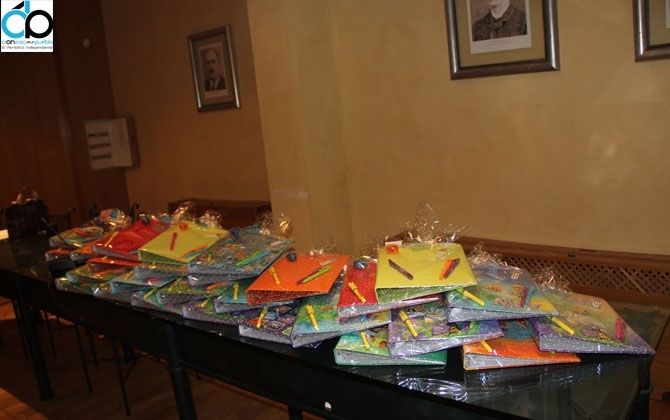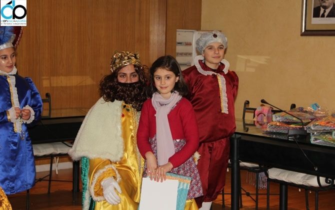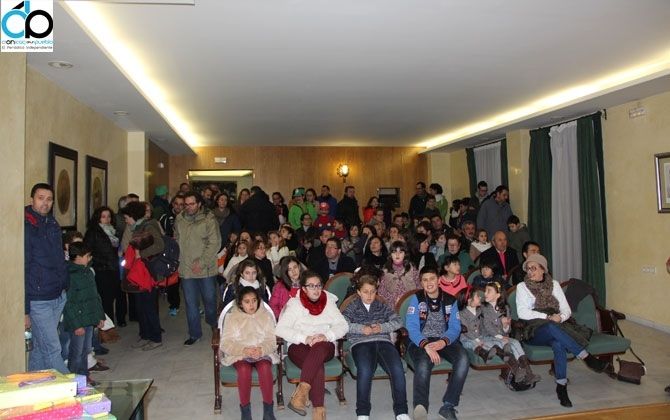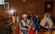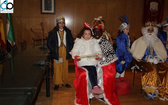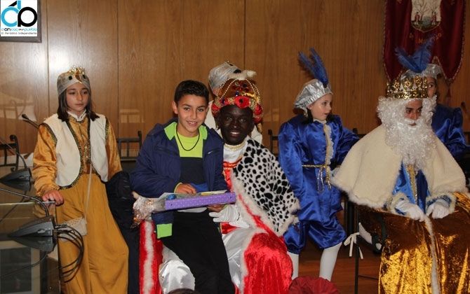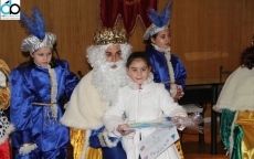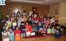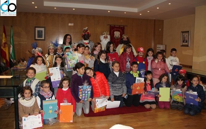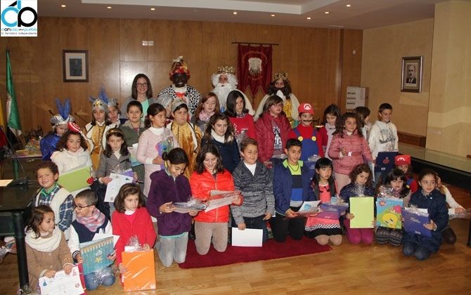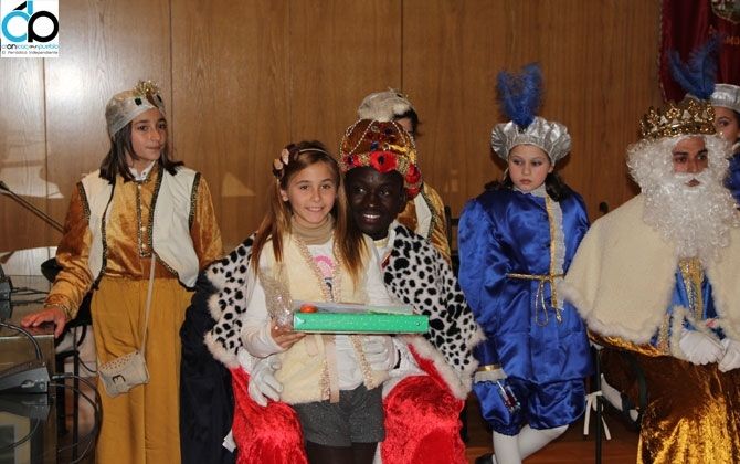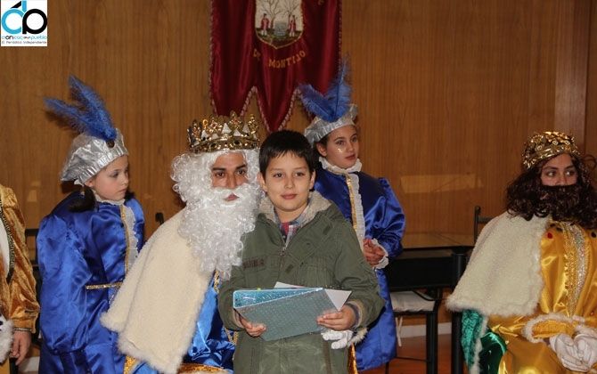 Tras finalizar el desfile de la Cabalgata de Reyes Magos, Sus Majestades repartieron los premios del concurso de tarjetas navideñas organizados por la Universidad Popular de Montijo y en el que participaron los niños de los centros escolares de la localidad.