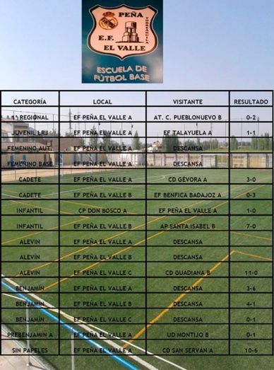 Crónica de los partidos disputados por le EF Peña el Valle