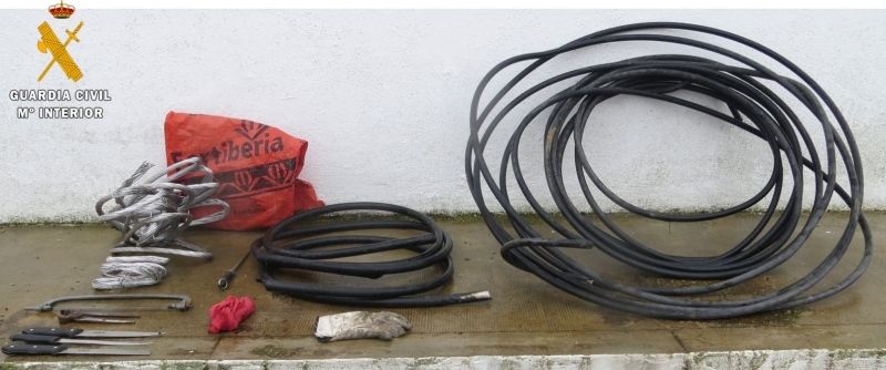 Tras su localización, los agentes le intervinieron unos 100 metros de cable de aluminio, que acababa de cortar del tendido eléctrico de la localidad. También se le intervino las herramientas utilizadas para la comisión del robo.