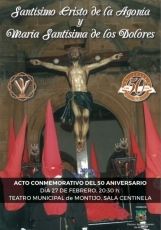 La Junta de Gobierno de la Cofradía del Santísimo Cristo de la Agonía y María Santísima de los Dolores, tienen a bien comunicarle el Programa de Actividades que va a desarrollar con motivo de la celebración de su 50 Aniversario (1966-2016).
