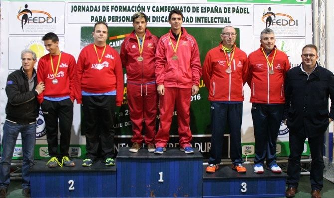 El alcalde Antonio Rodríguez Osuna, acompañado de los delegados de Atención a la Discapacidad y de Deportes Silvia Fernández y Pedro Blas Vadillo, ha asistido hoy a la entrega de premios y acto de clausura del Campeonato de España de Pádel para personas con discapacidad intelectual, que se ha celebrado en Mérida desde el pasado lunes y ha terminado hoy en las instalaciones de PadelMérida del polígono industrial El Prado.