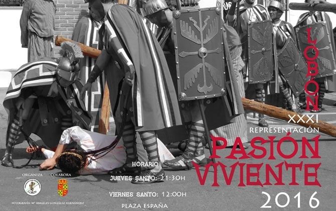 La Asociación Local Pasión Viviente, de Lobón organiza, en colaboración con el Ayuntamiento de Lobón, la XXXI representación de “La Pasión Viviente”, que tendrá lugar los días 24 y 25 de marzo, Jueves y Viernes Santo, en horario de 21:30 y 12:00 horas respectivamente.