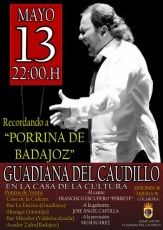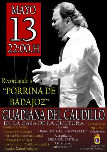 El próximo viernes, 13 de mayo, a las 22:00 horas, se celebrará en la Casa de la Cultura de Guadiana del Caudillo un concierto homenaje a "Porrina de Badajoz".